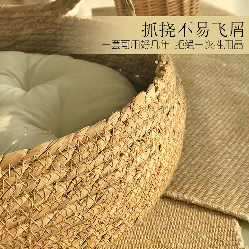 猫窝四季通用猫抓板藤编可拆洗夏天兔子窝猫猫用品编织凉席夏季 猫耳裸窝 6斤内小奶猫/35CM