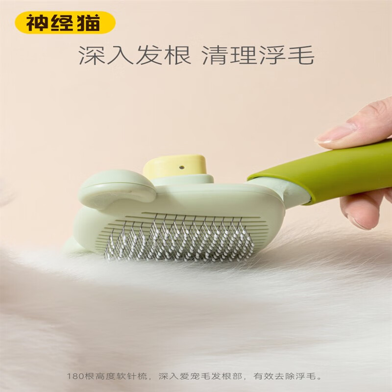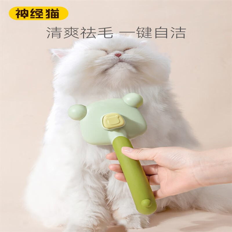 宠爱力猫梳子去浮毛梳毛刷子猫梳毛专用梳宠物刷毛器猫毛清理器英短梳毛 鸢草绿【清爽祛毛 一键自洁】