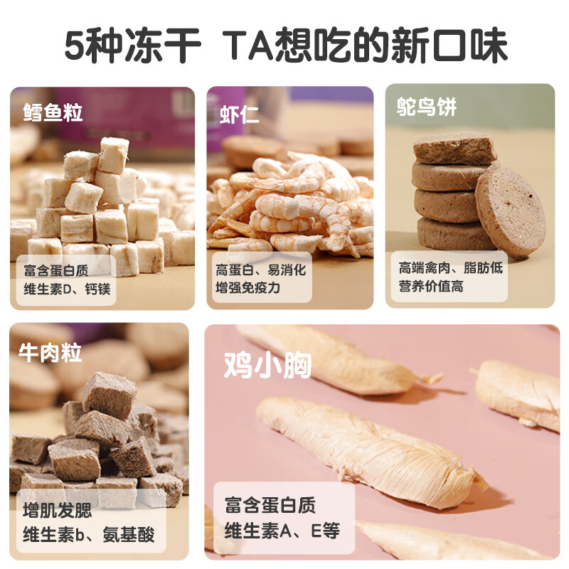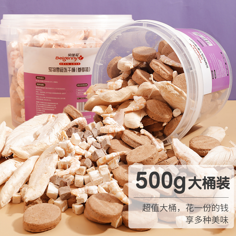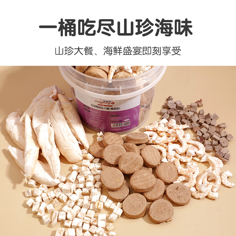 贝佳尼猫咪零食鸡肉冻干鸡肉宠物猫咪鸡胸肉多春鱼小鱼干狗狗训犬零食 尊享桶500g【海陆空豪华套餐】