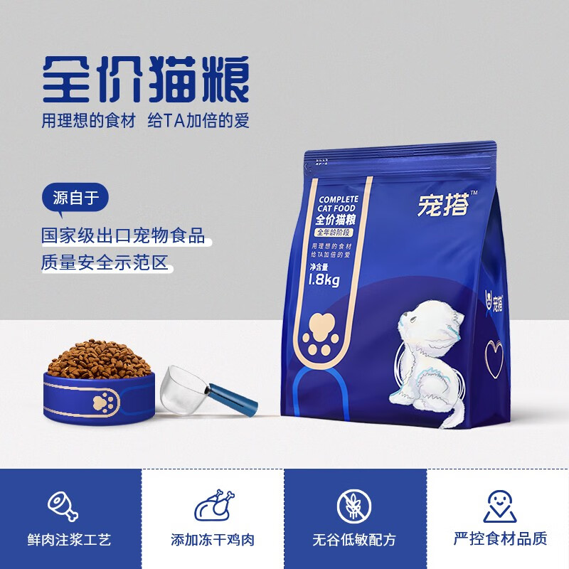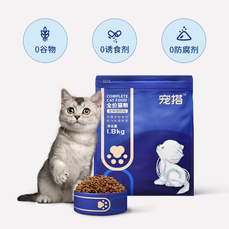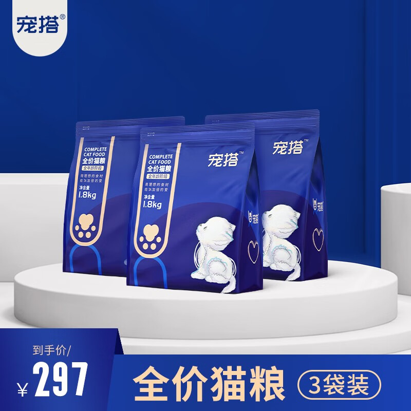 宠搭猫粮无谷全价 幼猫成猫益生菌猫粮 三袋(5.4kg)