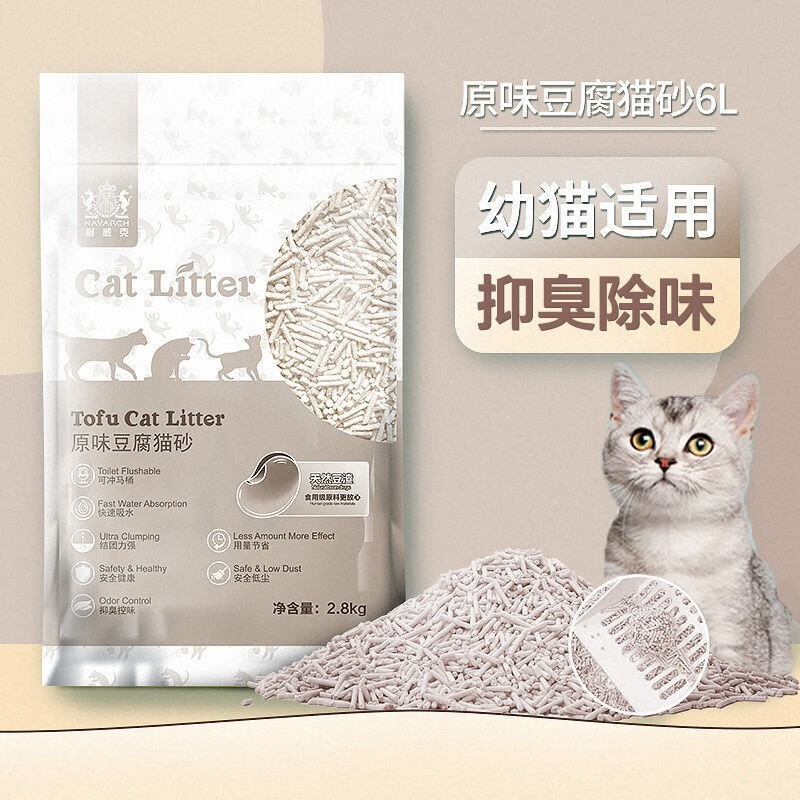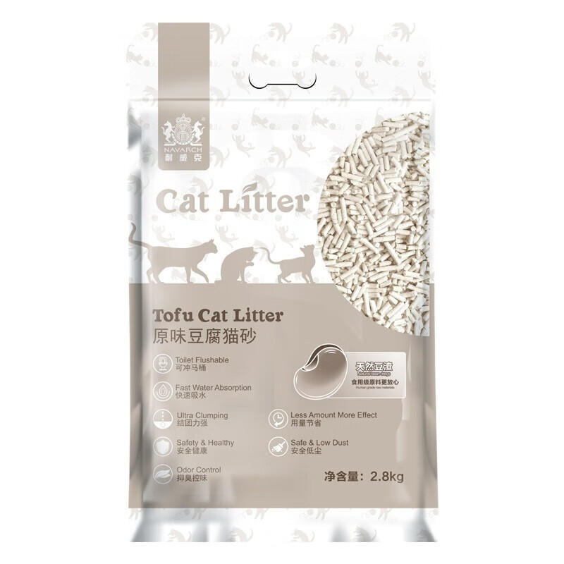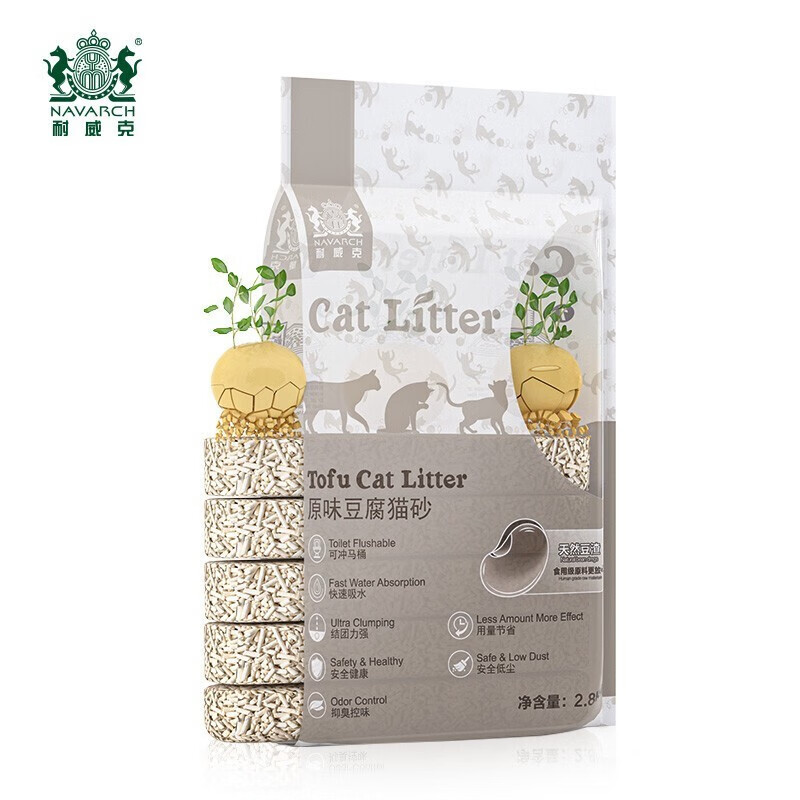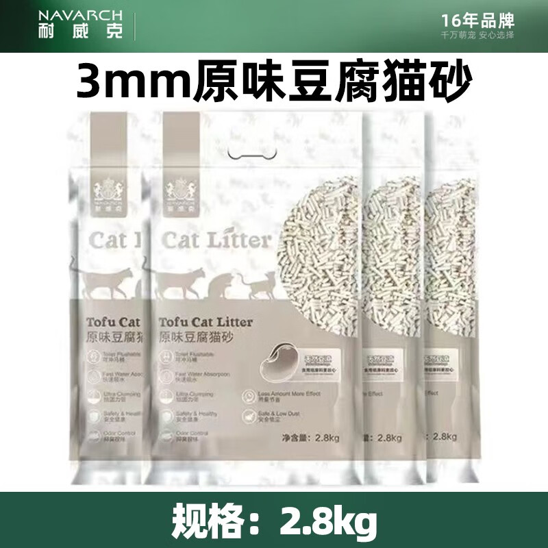 耐威克(Navarch)豆腐猫砂 绿茶味豆腐砂 低尘除味快速吸水易结团 3mm原味豆腐猫砂2.8kg 4包【囤货 超划算】