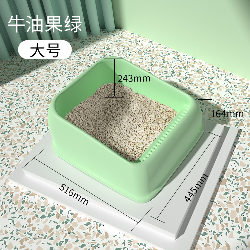 疯狂小狗 猫砂盆超大号半封闭开放式屎盆猫咪用品猫厕所防外溅带砂幼猫沙盆 绿色适合25斤内