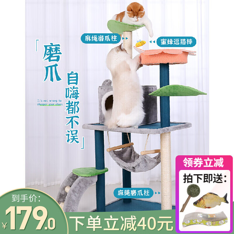 Hoopet 猫爬架小型猫架子猫窝一体剑麻猫抓板耐磨猫抓柱猫玩具猫跳台猫树 森林猫物语猫爬架