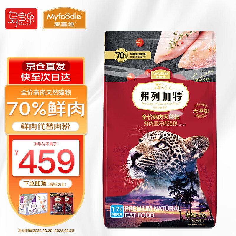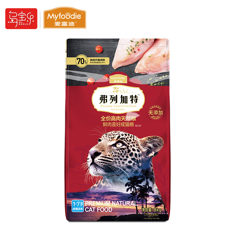 麦富迪(Myfoodie)全价猫粮 弗列加特系列高肉天然猫粮 8kg喜好成猫|含70%鲜鸡肉