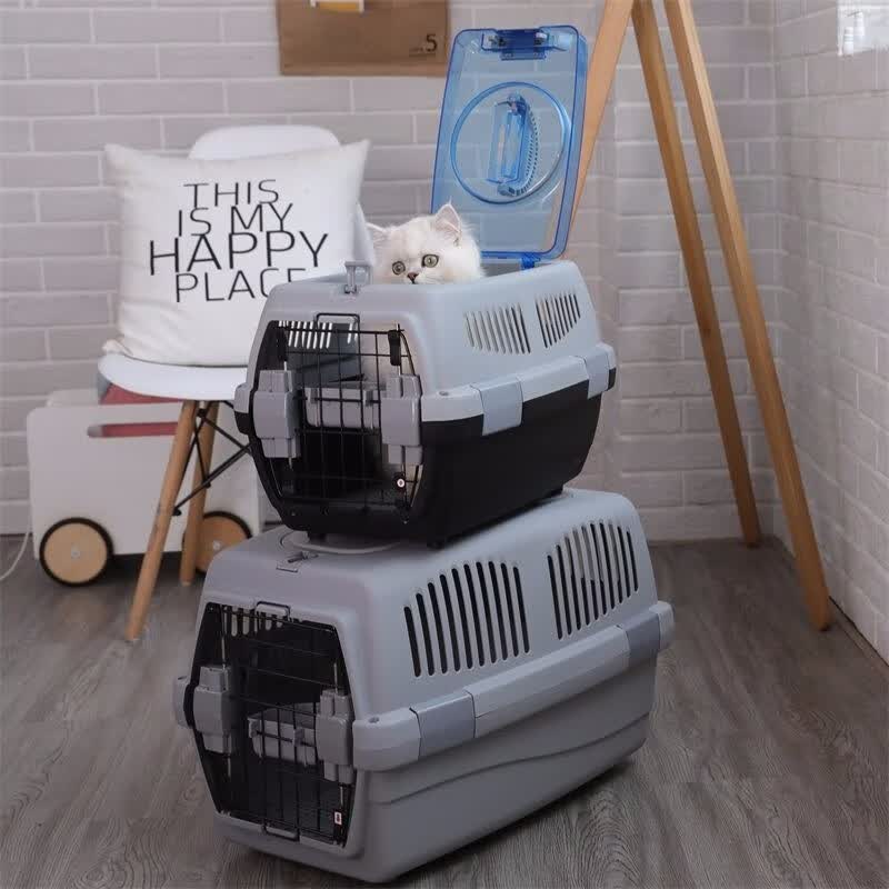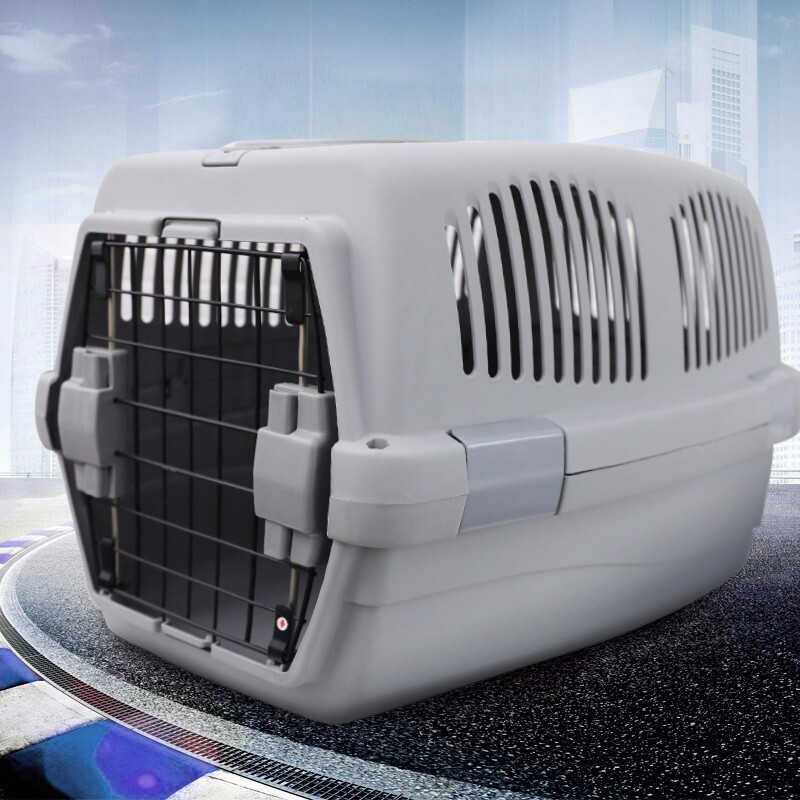 华元宠物航空箱猫包猫狗笼子猫咪国航飞机托运箱猫包太空舱手提箱小型犬便携车载外出用品 加厚款灰色L 15斤内-不含隔尿板及挂碗