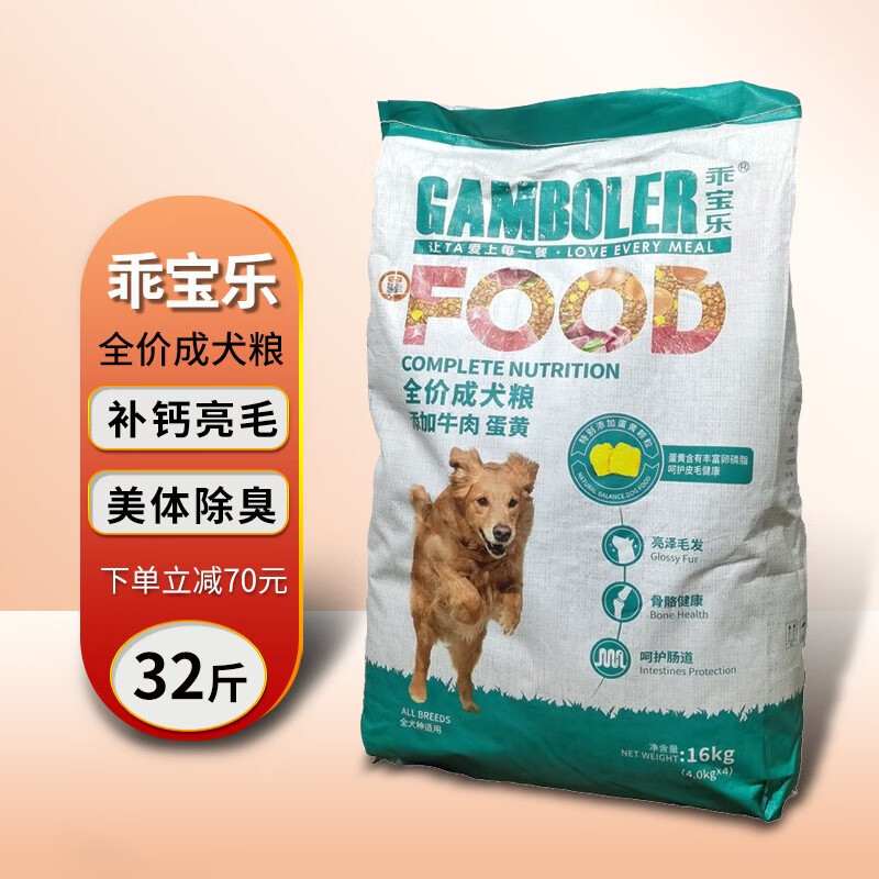 麦富迪(Myfoodie)乖宝乐迪狗粮32斤成犬粮牛肉蛋黄金毛边牧大型犬通用提升幼犬免疫 成犬粮 16kg