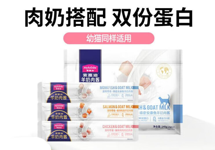 麦富迪猫条猫零食羊奶鲜肉酱猫条罐头营养成幼猫湿粮14g*10支 臻鲜鸡肉口味[10支]