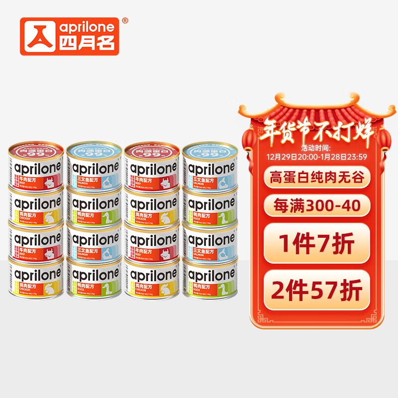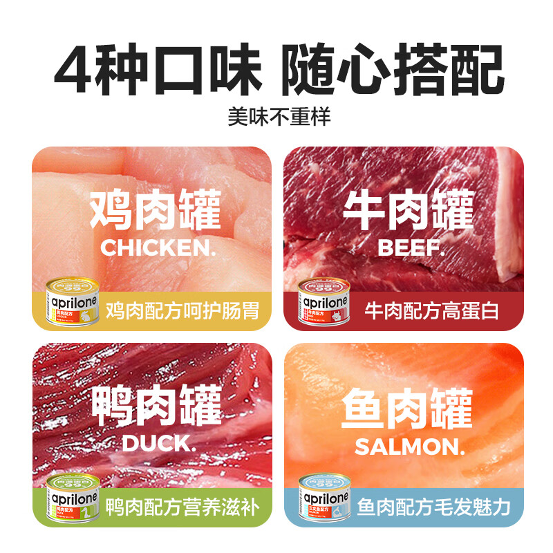 四月名全价猫罐头 混合口味170g*4 纯肉无谷营养主食罐头 猫湿粮汤罐