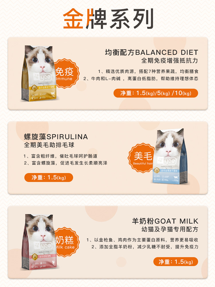 yee全价奶糕猫粮1-4-12月离乳期幼猫增肥发腮营养专用天然粮1.5kg