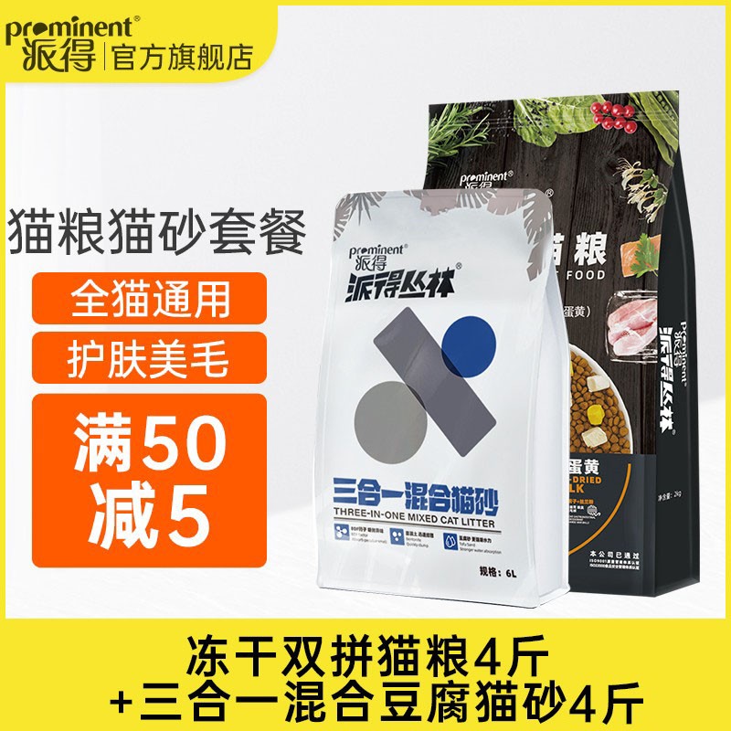 派得猫粮 成猫幼猫冻干双拼全价无谷英短布偶猫粮 冻干双拼猫粮4斤 【三合一混合猫砂4斤】