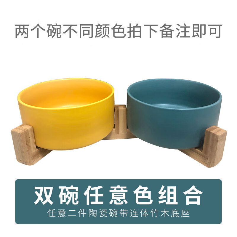楠洛猫碗狗碗陶瓷黑色水碗猫咪狗盆狗狗饭盆水盆食盆宠物喝水防打翻猫 2个单碗 双碗连体竹架 【颜色请 21CM/1800ML/超大型犬专用