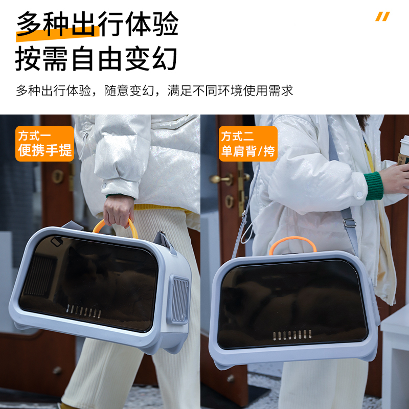 hoopet猫包外出包便携太空舱带温度计宠物透气单肩手提猫咪背包大容量猫 宠物单肩包-50*25*30cm 适用15斤内猫-8斤内狗
