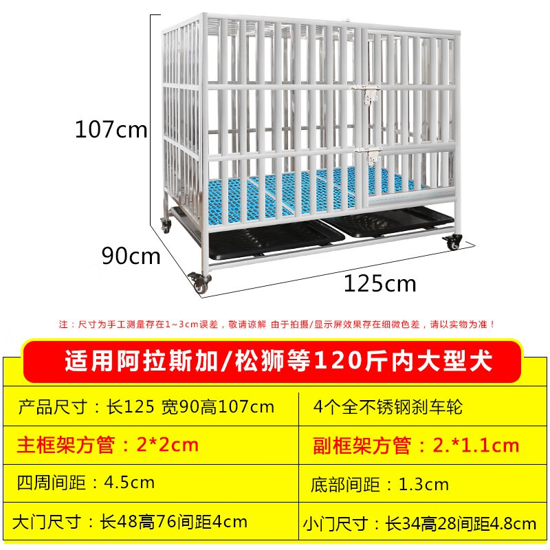 贝尼宠 狗笼子不锈钢 狗狗围栏 室内泰迪拉布拉多柯基比熊犬加粗狗笼 不锈钢折叠全方管125x90x110