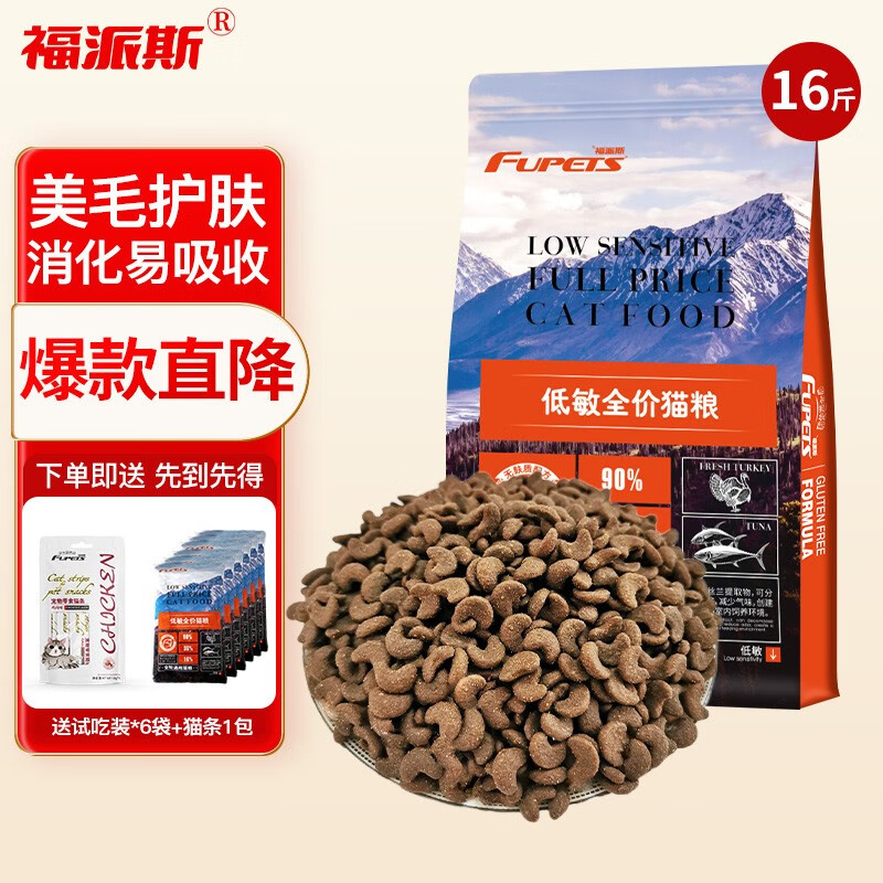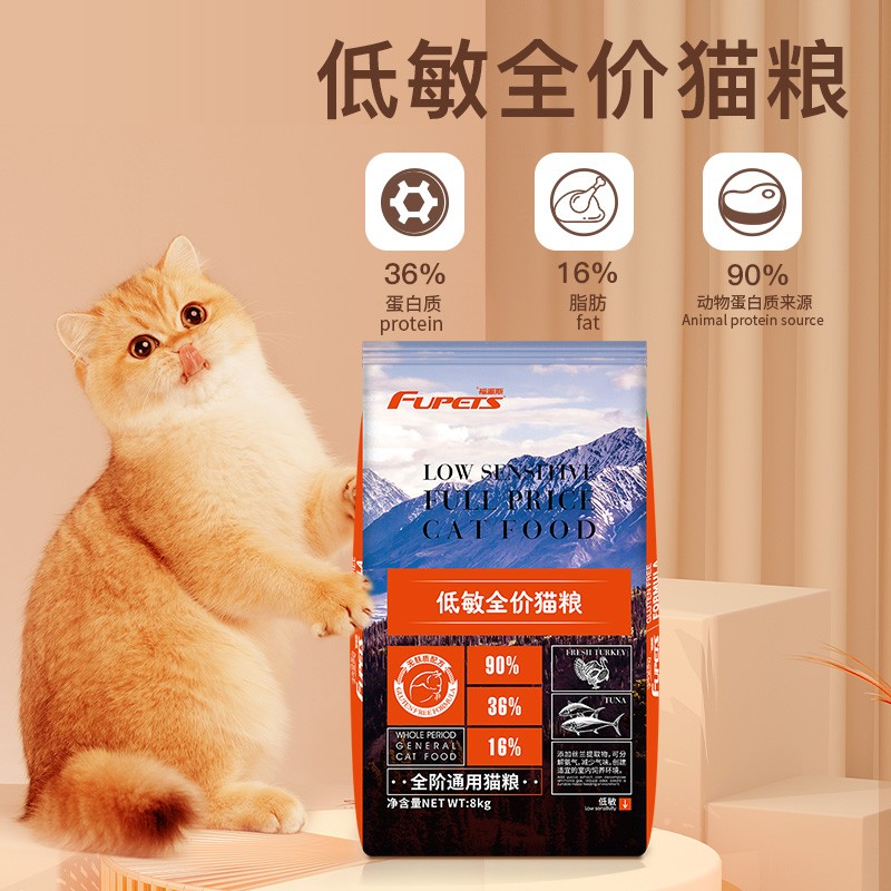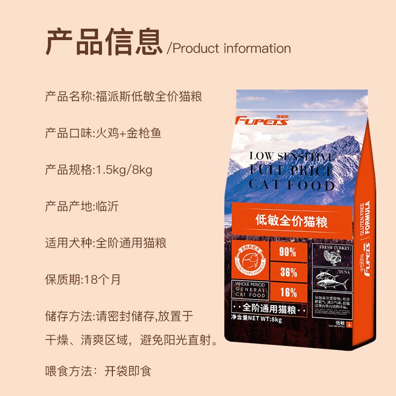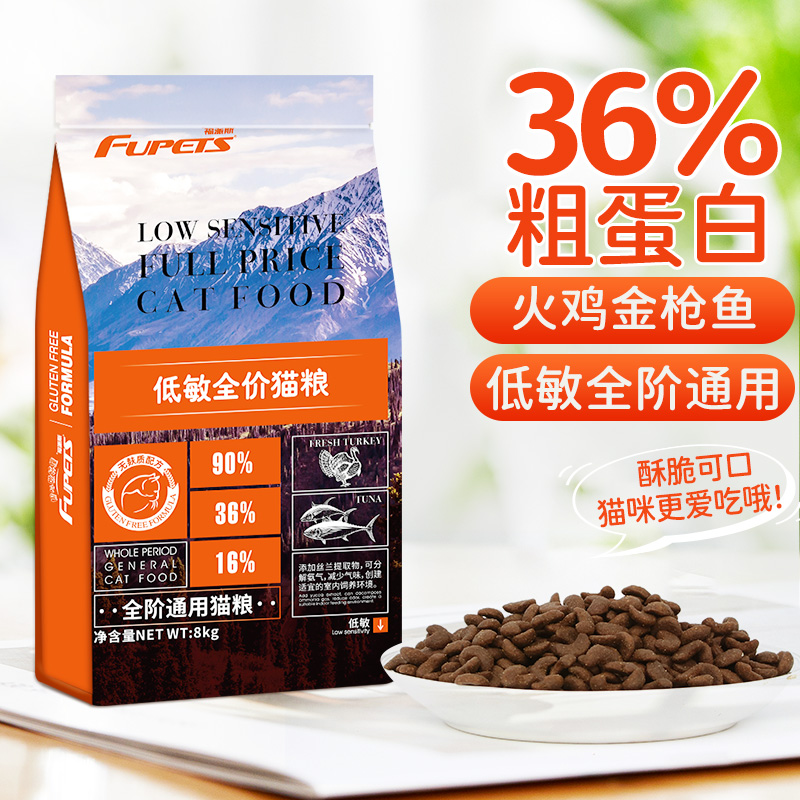 福派斯无麸质低敏美毛全价通用猫粮火鸡 金枪鱼美短蓝猫家养猫成猫幼猫 8kg