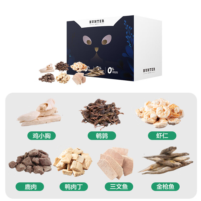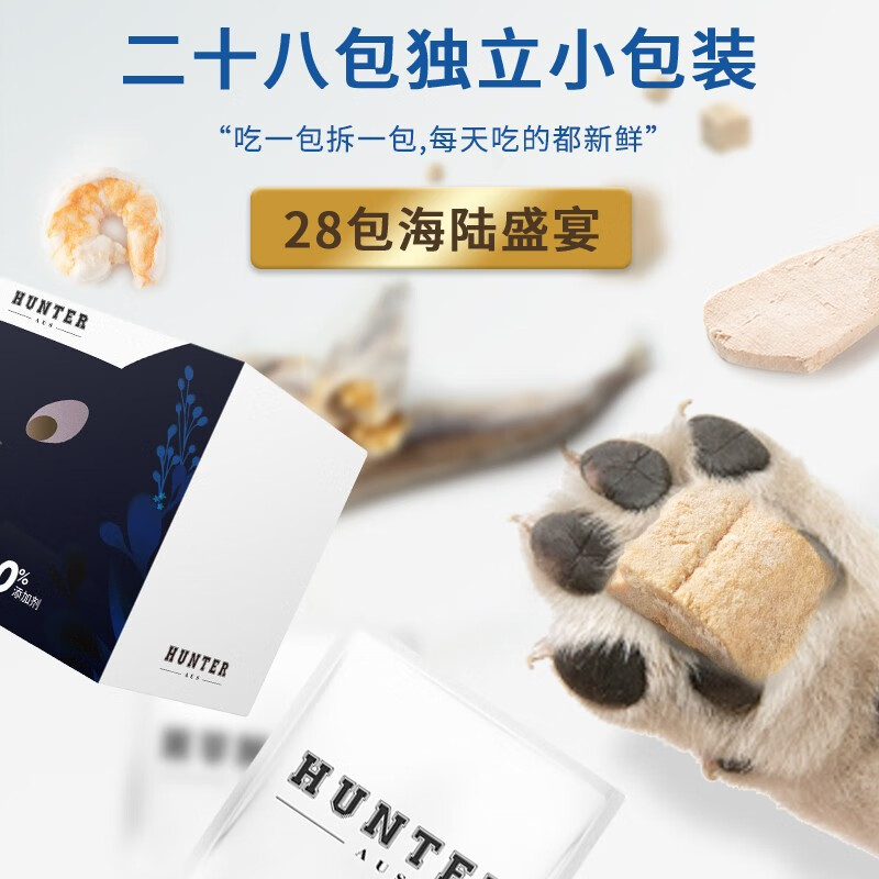 hunter ausHunter猎手宠物猫零食狗零食鹌鹑冻干鸡胸肉七种肉海陆盛宴280g