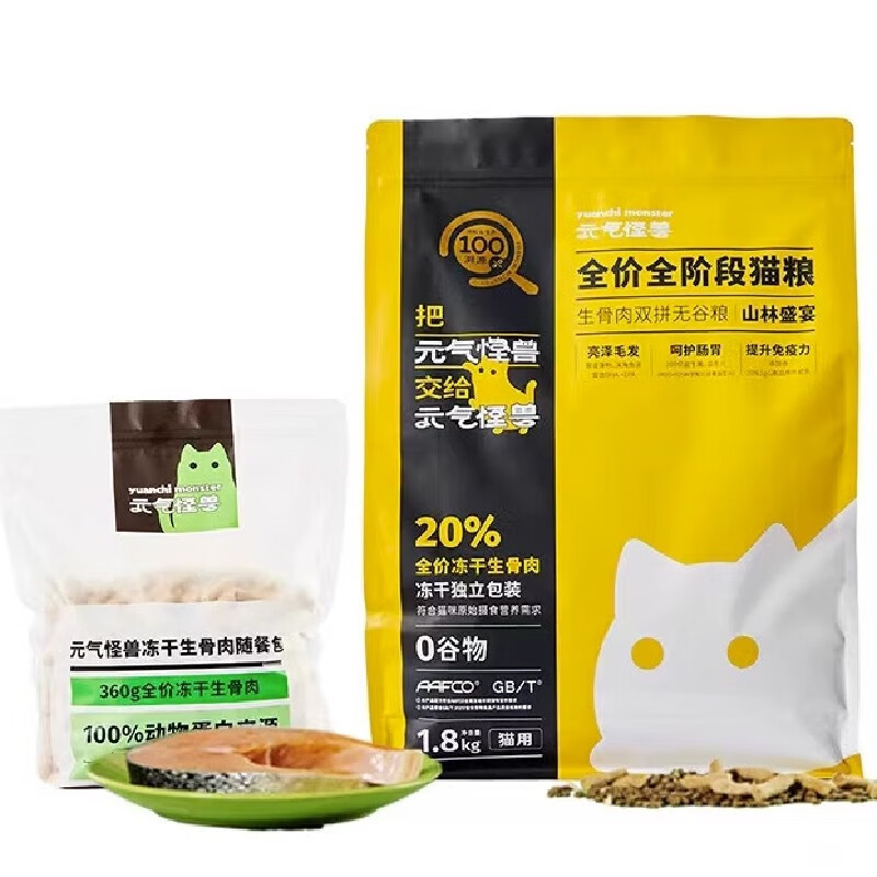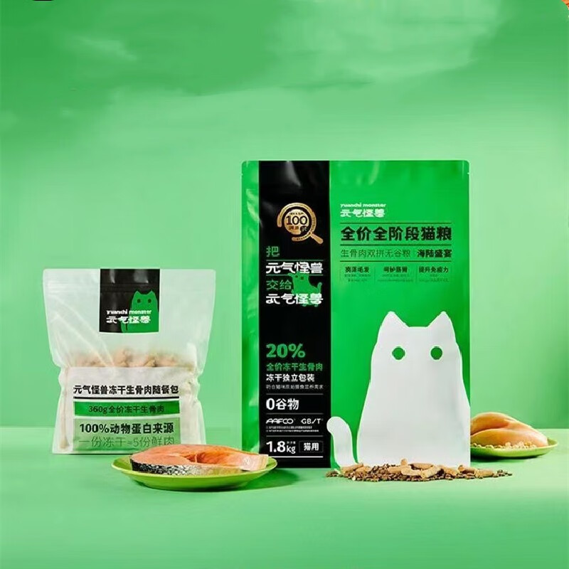短云元气怪兽生骨肉双拼冻干主粮全价全阶段成幼猫主粮营养升级款猫粮 海陆盛宴 1.8kg 100g试吃