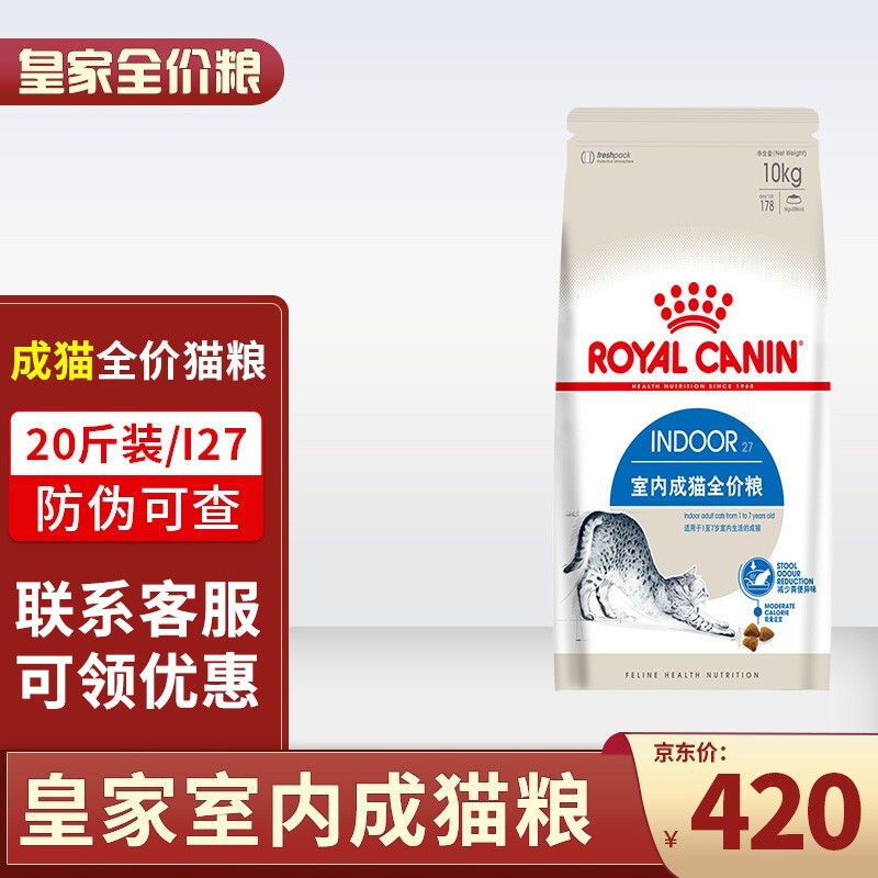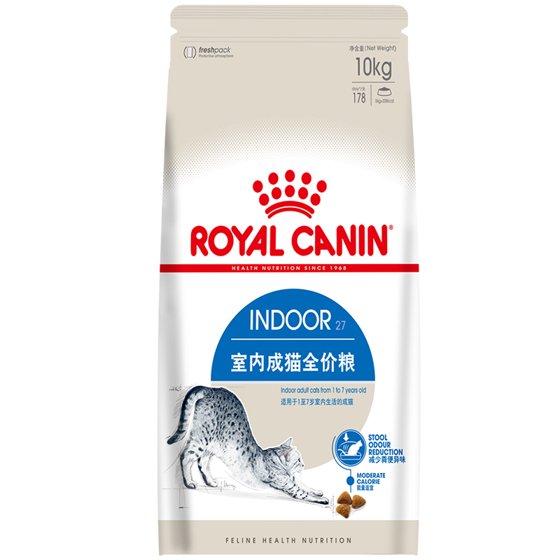 皇家猫粮 I27室内成猫猫粮 Indoor27 12月龄以上去毛球英短蓝猫猫咪猫粮 I27室内成猫≥12月10KG