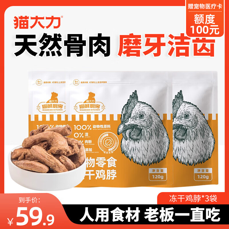 猫大力喵鲜冻干鸡肉粒冻干鲭鱼冻干鸡脖通用增肥营养成猫零食全价成幼猫 冻干鸡脖3袋