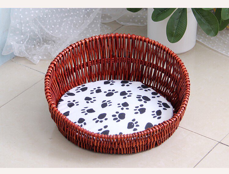 藤编比熊专用狗窝夏天小型犬泰迪宠物凉窝一窝两用猫窝通用可拆洗