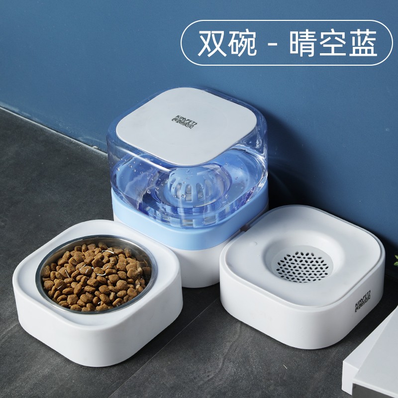 KimPets猫咪饮水机不插电流动喝水器狗狗自动喂水喂食猫防湿嘴打翻宠物碗 双碗-晴空蓝 M-中型