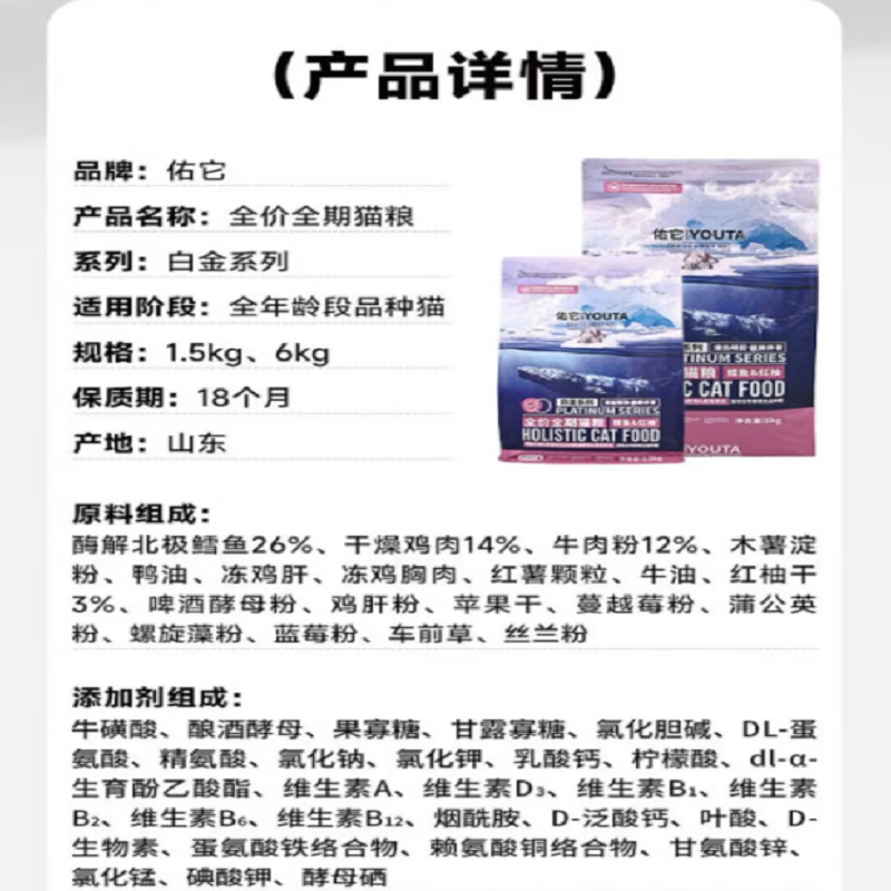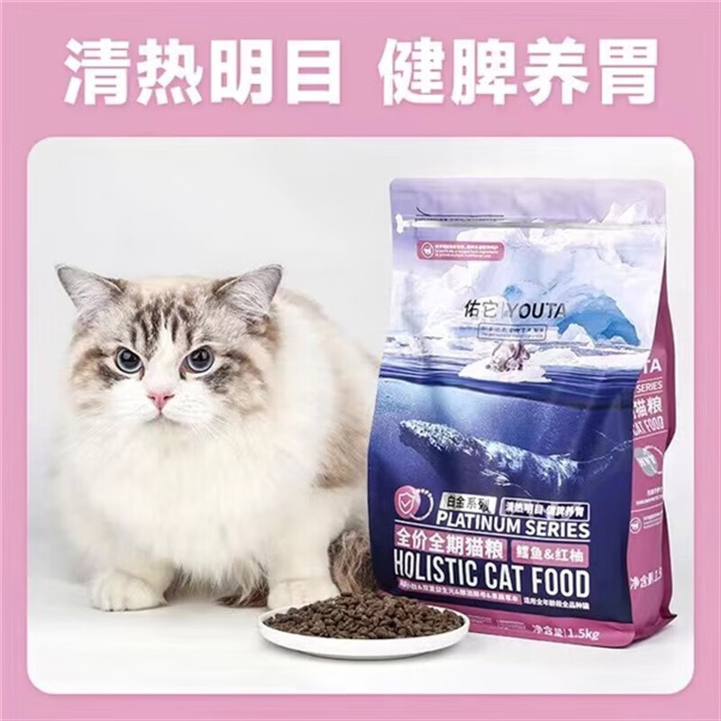 佑它(YOUTA)全阶无谷全猫粮鸡肉鳕鱼牛肉三文鱼宠物营养低脂肪消化猫粮 无谷鳕鱼红柚 6kg