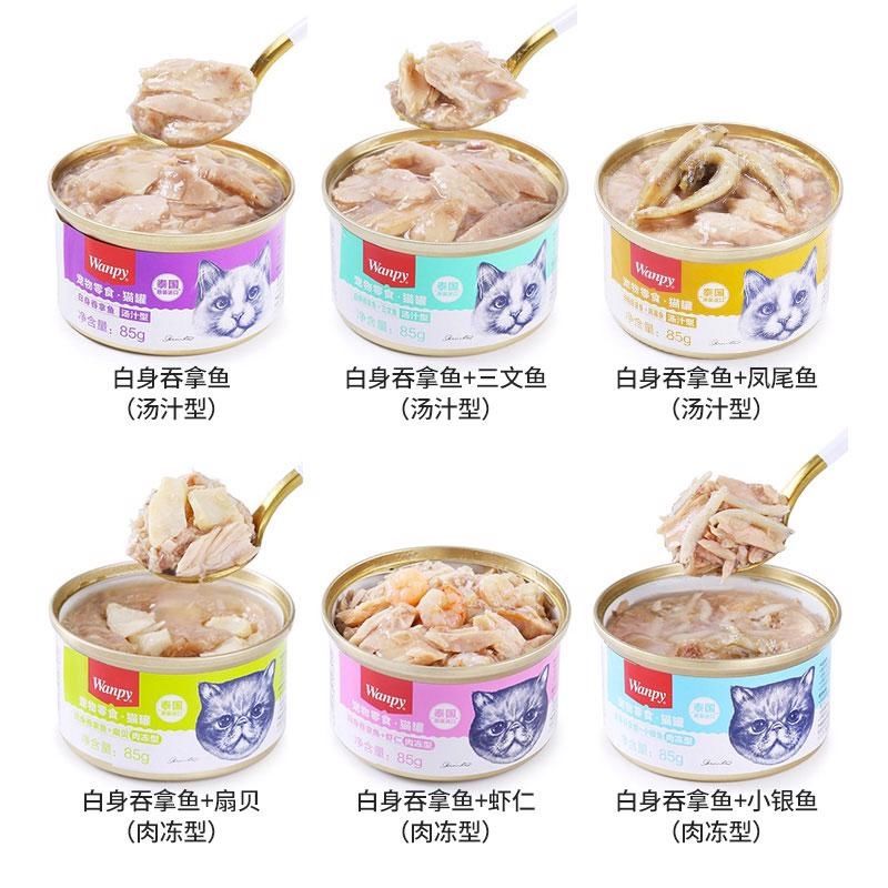 顽皮(Wanpy)猫罐头猫零食主食猫咪湿粮小鱼干妙鲜封包85g*24罐猫 24罐 吞拿鱼 虾仁(肉冻型)