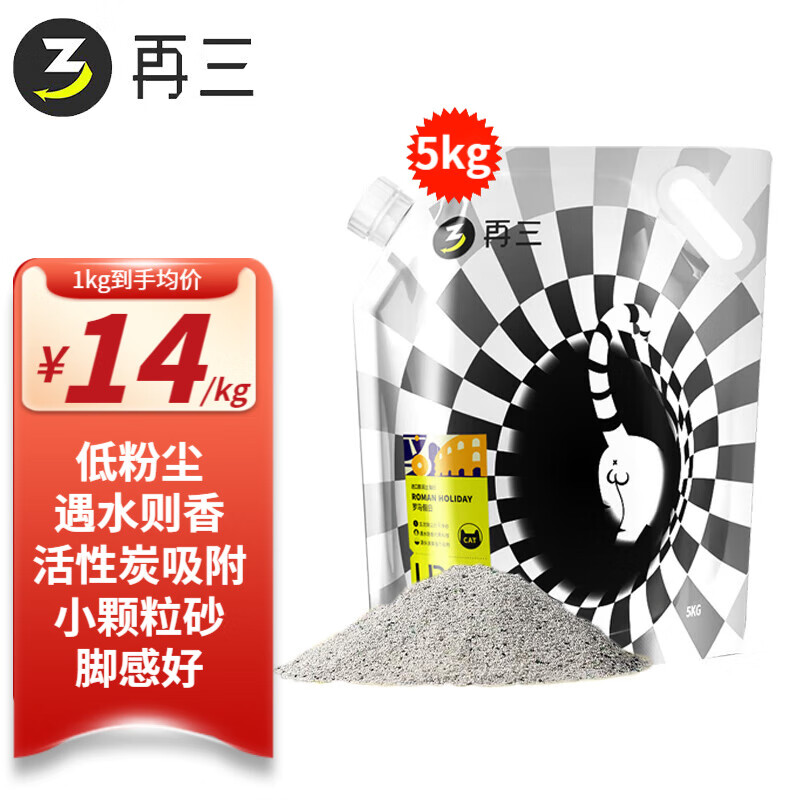 再三膨润土矿物猫砂5kg低粉尘去味不粘底结团快日常无香味猫咪用品 5kg