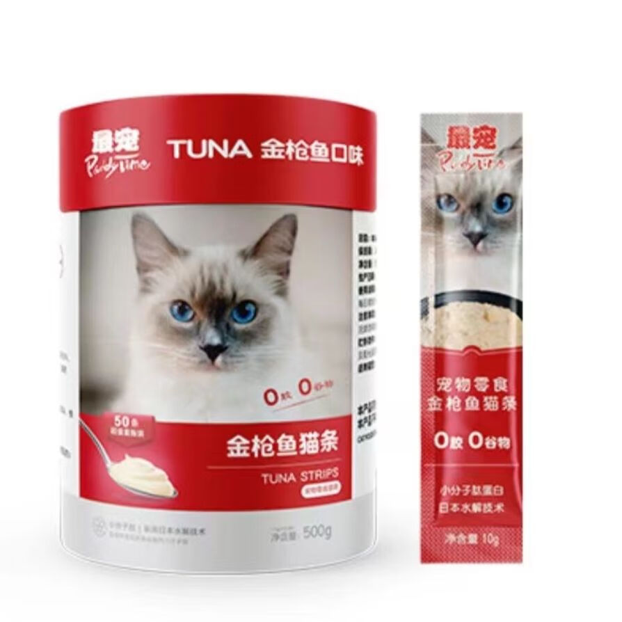 最宠猫条毛条猫零食幼猫营养条增肥补钙桶装10g*50条15g*30 金枪鱼10g*50条 一件