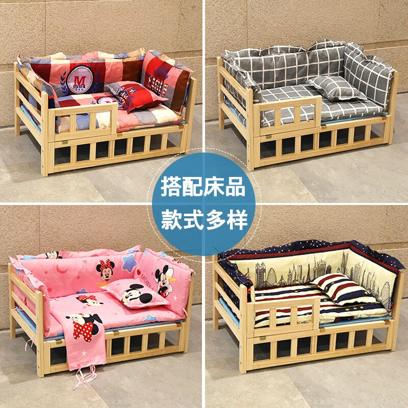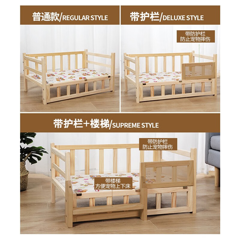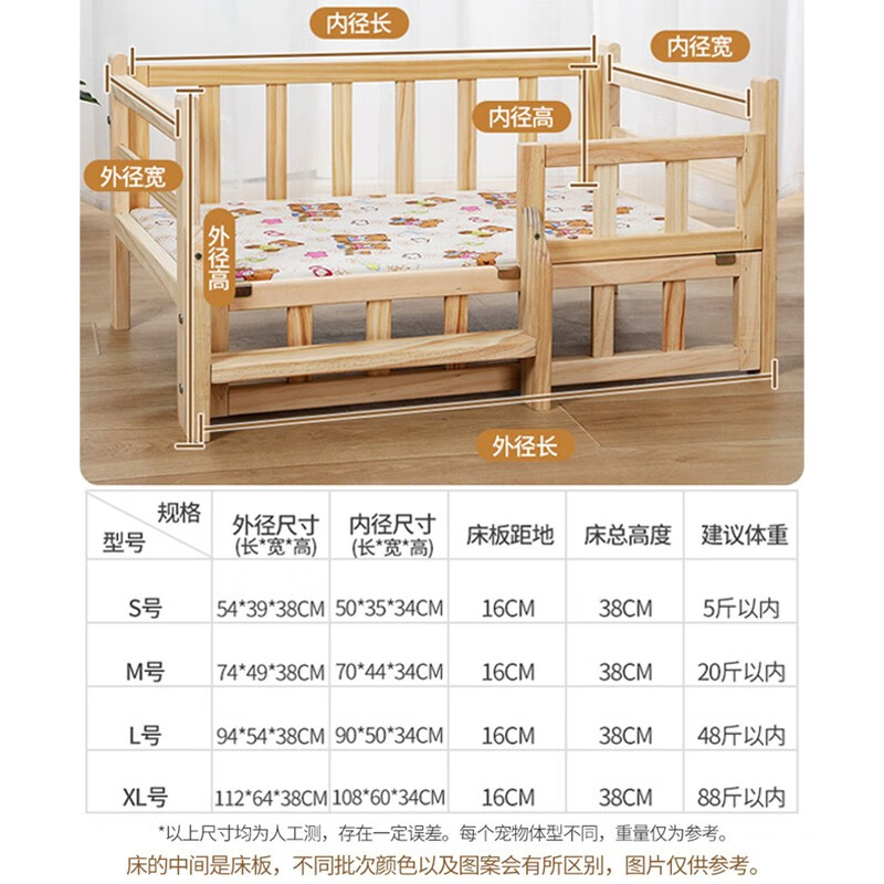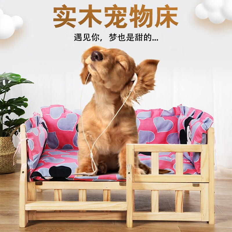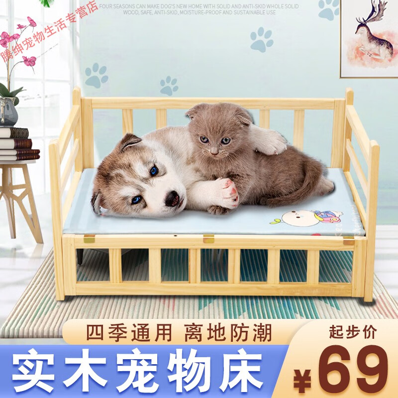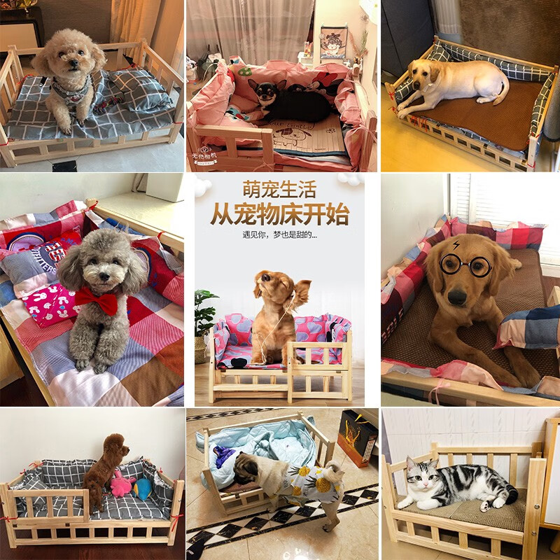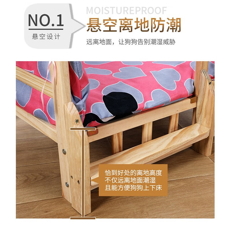 蒙奇多狗床离地实木狗窝四季通用泰迪法斗比熊大中小型犬猫狗宠物床防潮 裸床 S-54*39*38cm建议5斤以内 普通款