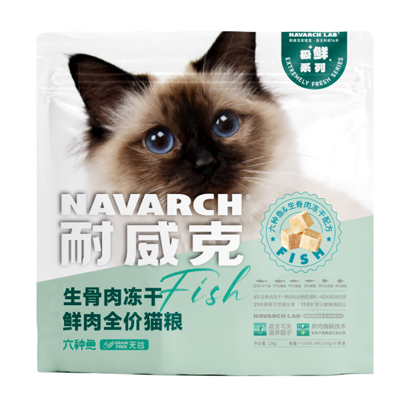 耐威克(Navarch)猫粮六种鱼生骨肉冻干鲜肉无谷全价全期成幼猫粮通用试吃装 六种鱼无谷冻干 228/g
