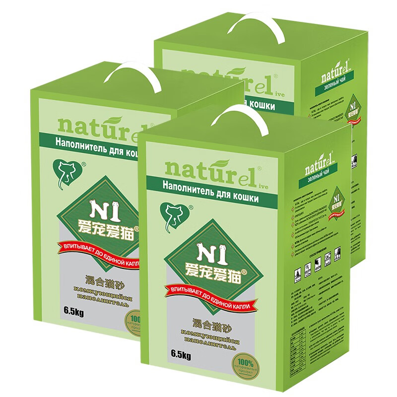 N1 爱宠爱猫N1钠基膨润土混合猫砂 无尘除味易结团猫沙猫咪用品 混合猫砂6.5kg*3(整箱)