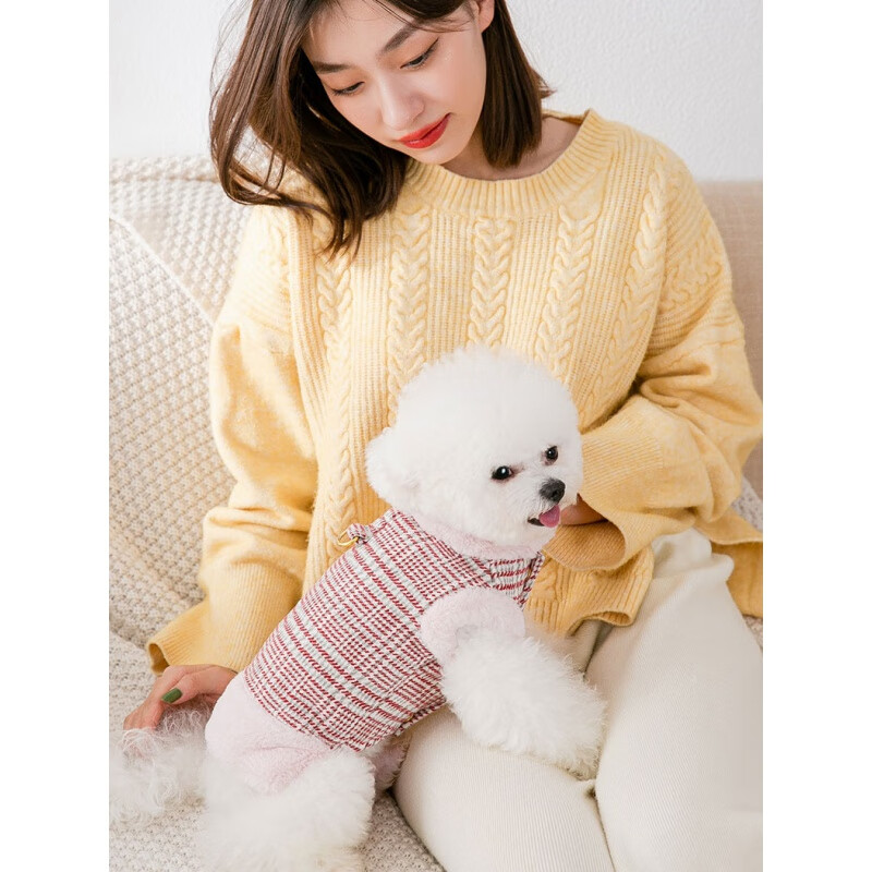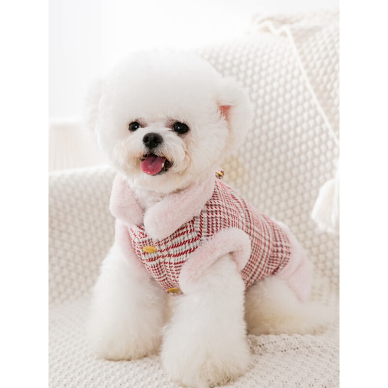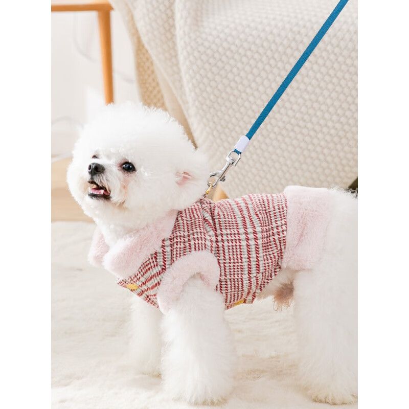 可牵引棉衣秋冬装宠物泰迪贵宾比熊博美猫咪小型幼犬狗狗衣服 红色 XS(建议体重1-3斤)