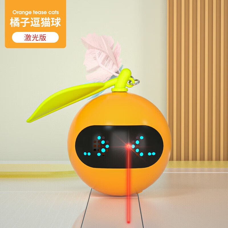 疯狂小狗 猫咪玩具电动自嗨解闷球逗猫棒羽毛激光灯神器宠物小猫猫用品 橘子智能魔球-升级款(羽毛 铃铛 激光灯)