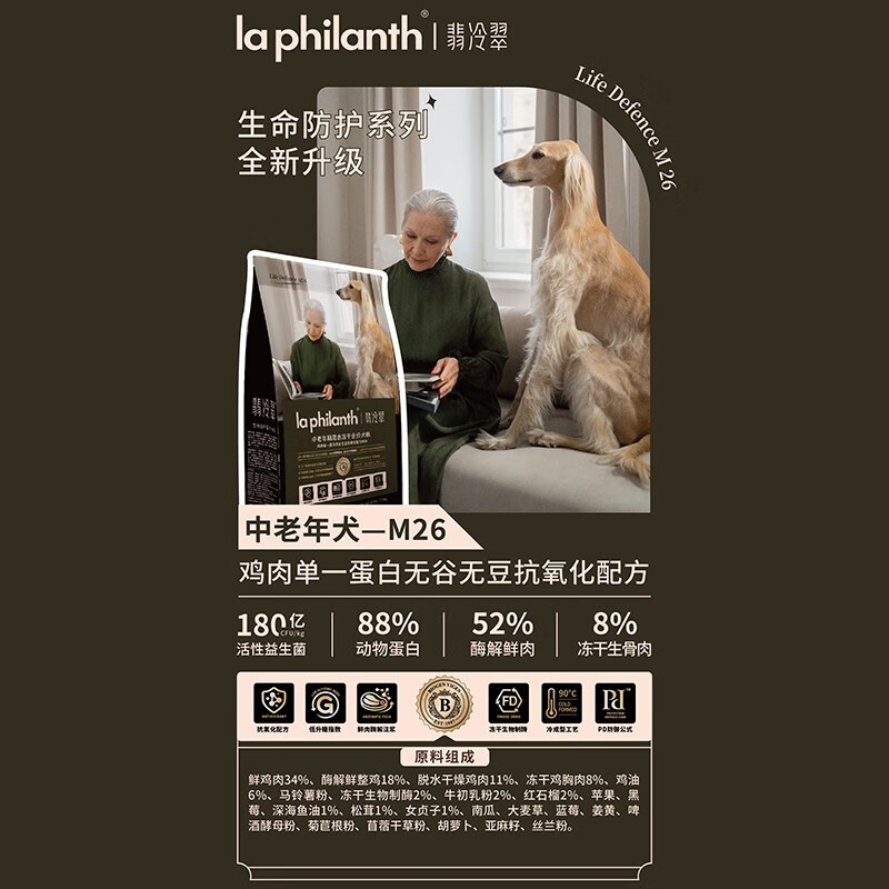 翡冷翠狗粮生命防护金枪鱼鸡肉奶糕粮金毛泰迪成幼犬通用无谷犬粮 M26中老年专用 1.5kg