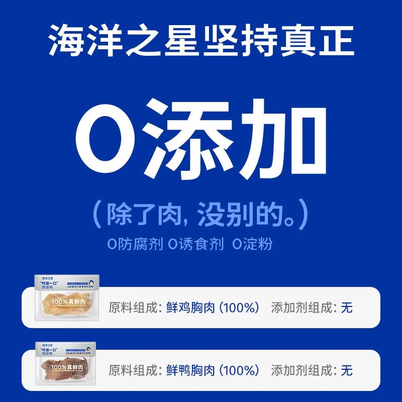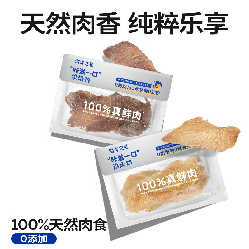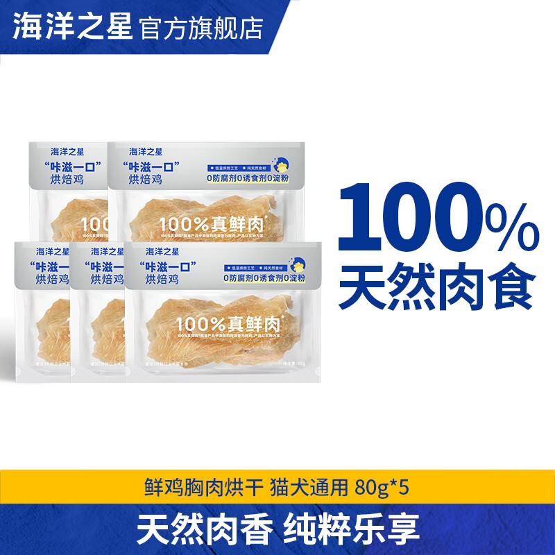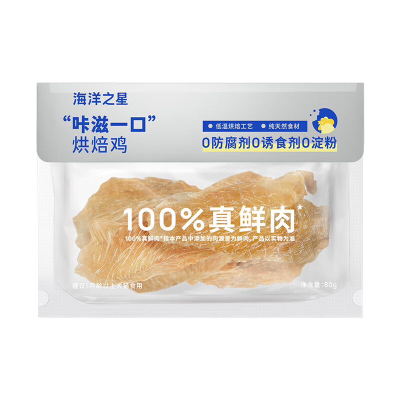 海洋之星(fish4dogs)宠物零食猫犬通用鲜鸡肉干鸡胸肉片鲜肉原切鲜鸭肉干 烘焙鲜鸡肉肉片400g(80g*5袋)