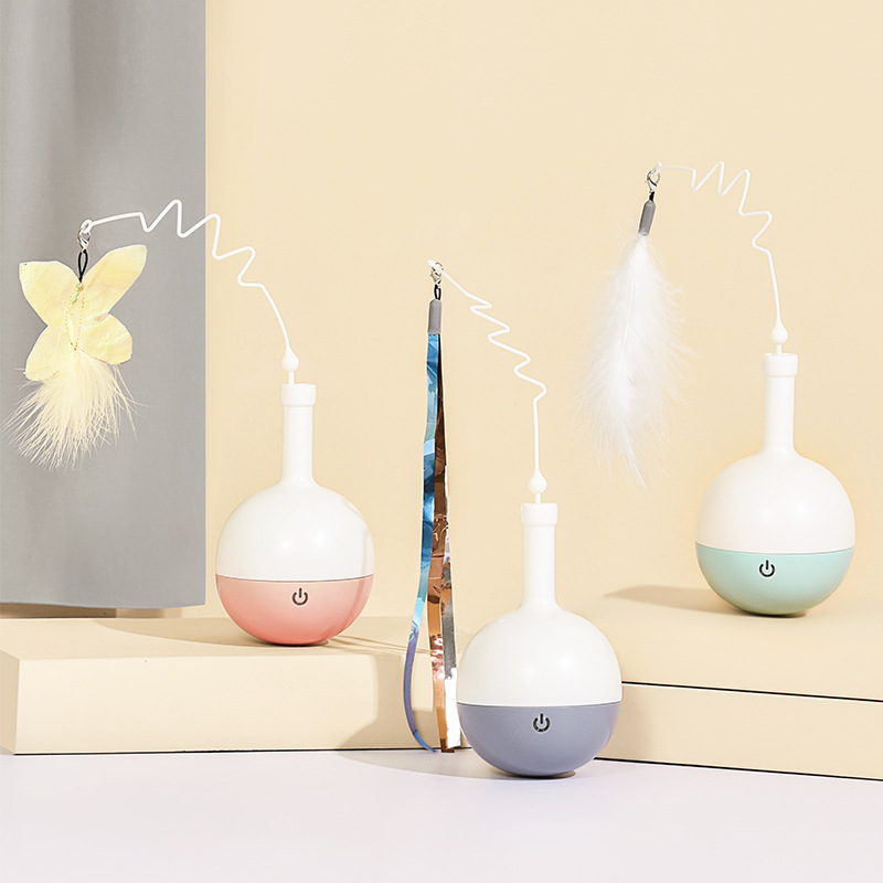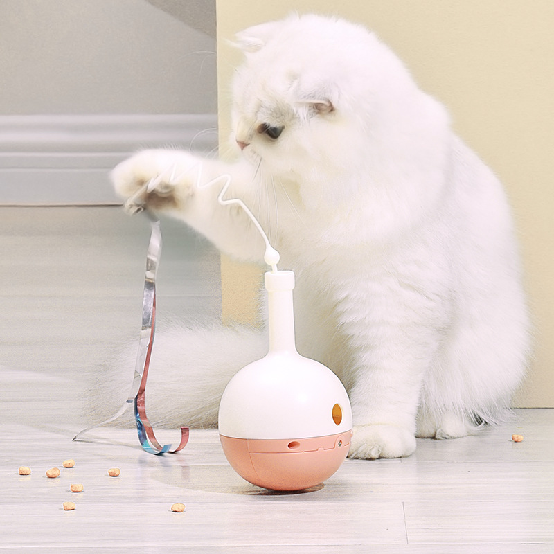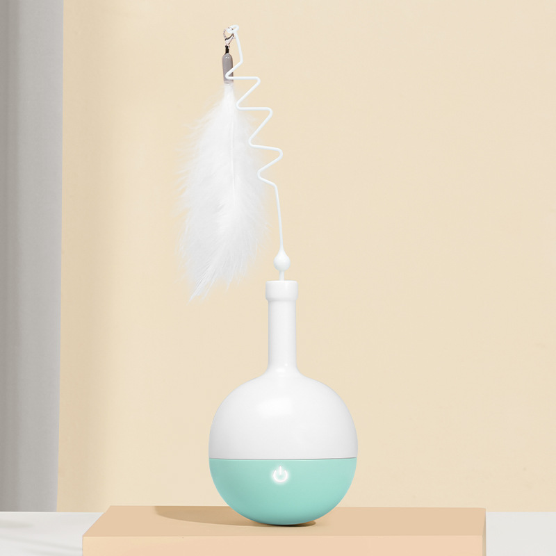 派可为 自嗨智能毛绒猫玩具自动逗猫球逗猫神器电动滚动不倒翁漏食球猫咪用品小猫玩具 绅士雅灰羽毛款【配电池】
