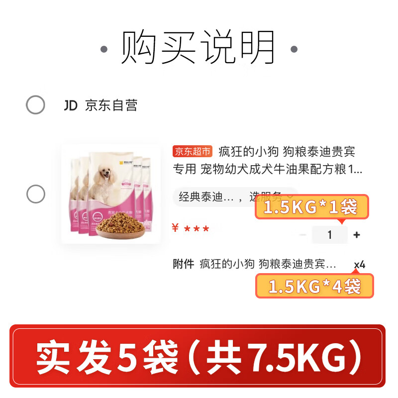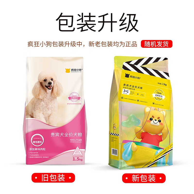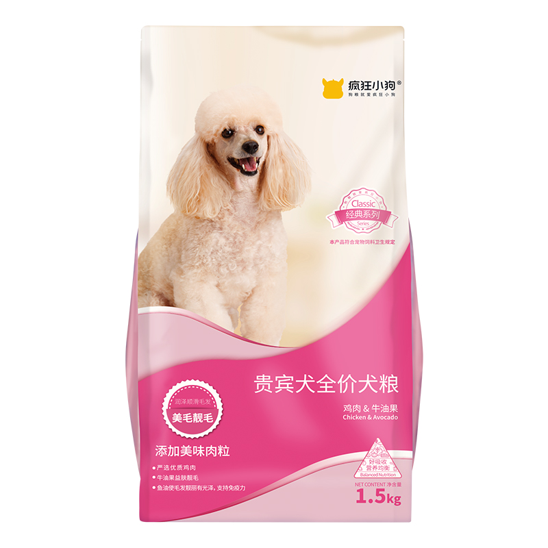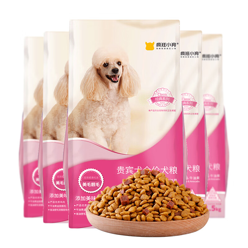 疯狂小狗 狗粮泰迪贵宾专用 宠物幼犬成犬牛油果配方粮1.5kg *5 狗粮7.5kg(附件包含在主商品内,非赠品)