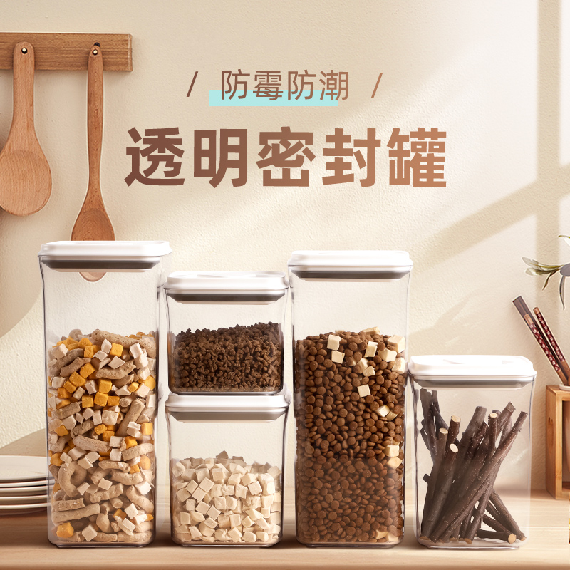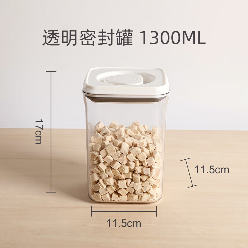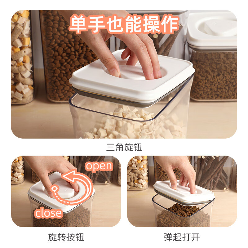 2022新款爱丽思宠物真空储粮桶 猫粮储存桶密封防潮狗粮密封罐储粮盒子真空分装袋宠物零食收纳盒 密封储粮罐1300ml