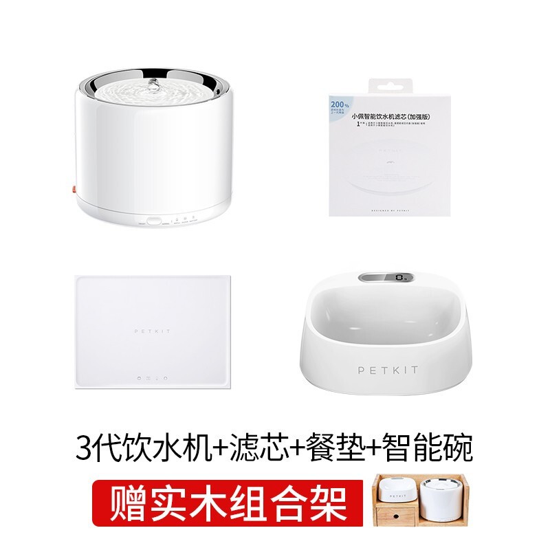 小佩PETKIT 第三代智能宠物饮水机喂食器套装猫咪狗自动循环不锈钢宠物饮水机 3代饮水机 智能碗 滤芯 餐垫( 组合架)