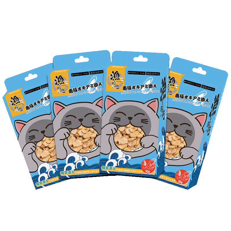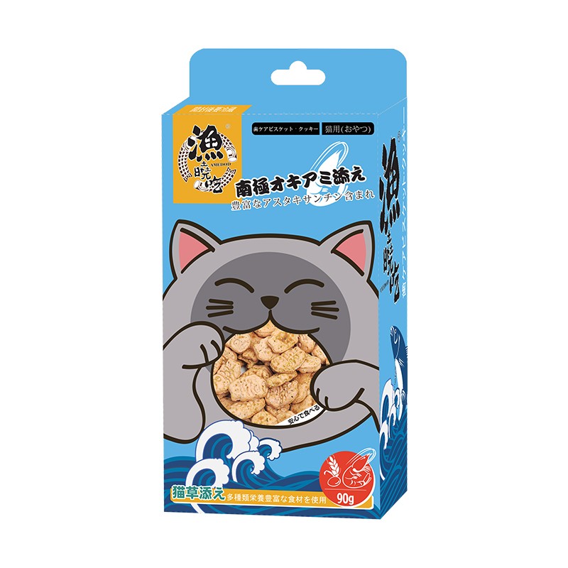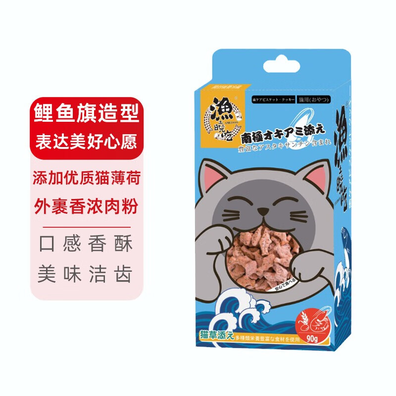 渔晓吃猫草薄荷小鱼饼干幼猫成猫宠物零食磨牙洁齿猫零食饼干 90g*4盒 磷虾味90g*4盒