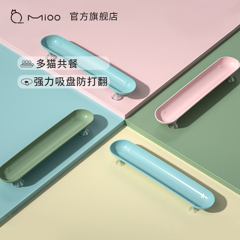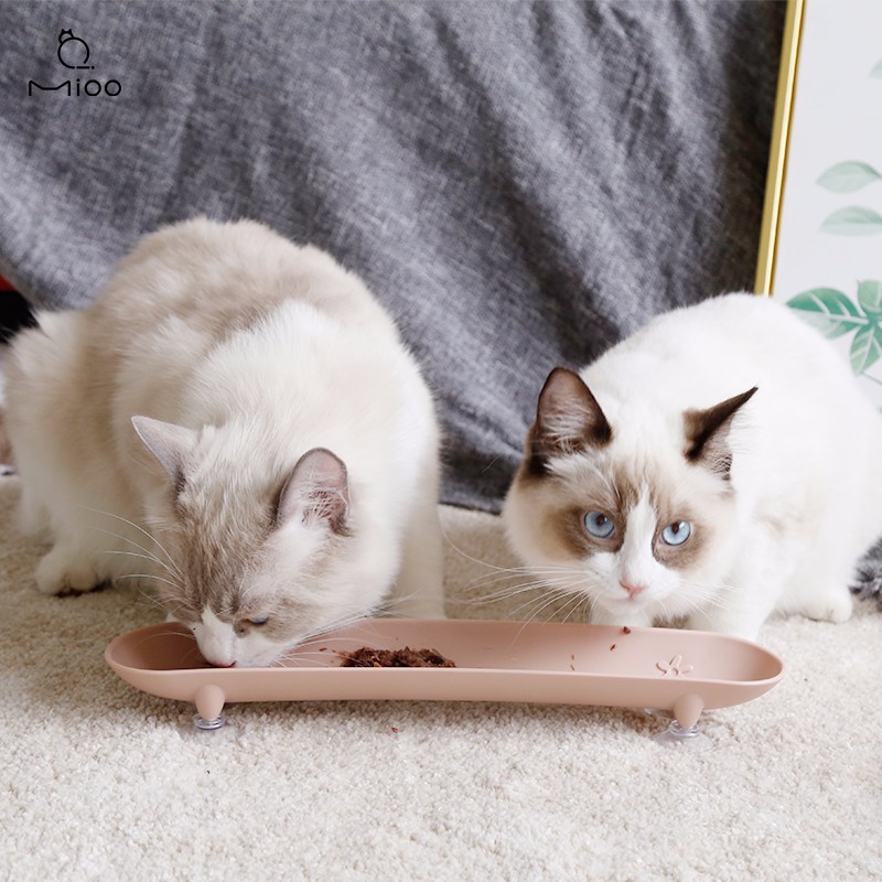 Mioo 猫咪狗狗长条宠物食盘防打翻猫碗耐用宠物食具三色可选 灰粉色【强力吸盘/金属螺栓/食品级pp材质】