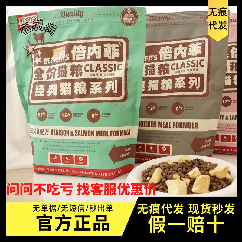 倍内菲猫粮6.8无谷冻干全阶生骨肉鸡牛羊肉长胖发腮成猫幼猫1.8kg 鹿肉三文鱼(咨询客服拿底价别 1.8kg经典系列