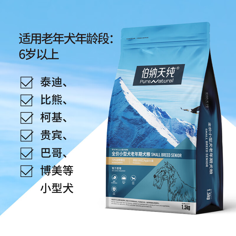 伯纳天纯宠物狗粮 中老年犬7岁以上小型成 .犬1.5kg 鸡肉 糙米·苹果经典系 小型犬老年狗粮1.5kg