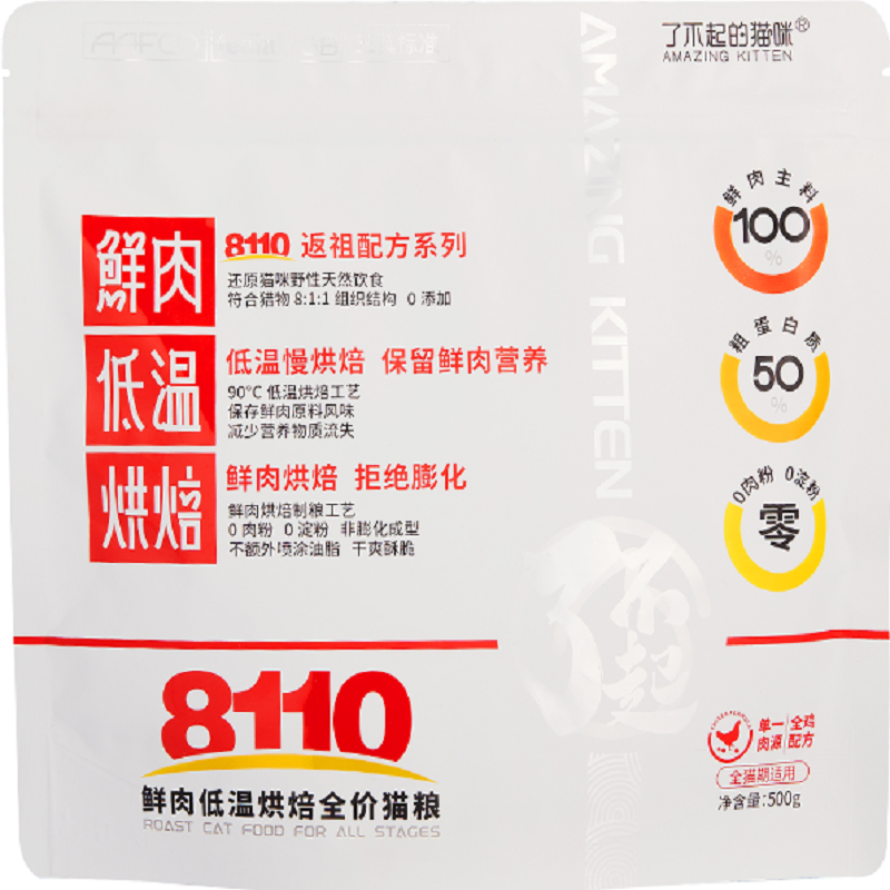 了不起的猫咪鲜肉低温烘焙猫粮8110成猫幼猫全价通用试吃装50%粗蛋白 8110猫粮试吃装