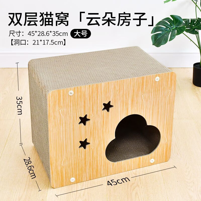 超大猫抓板耐磨特大号猫磨爪子纸箱猫窝夏季通用瓦楞纸猫房子猫屋 大号云朵-建议12斤以下