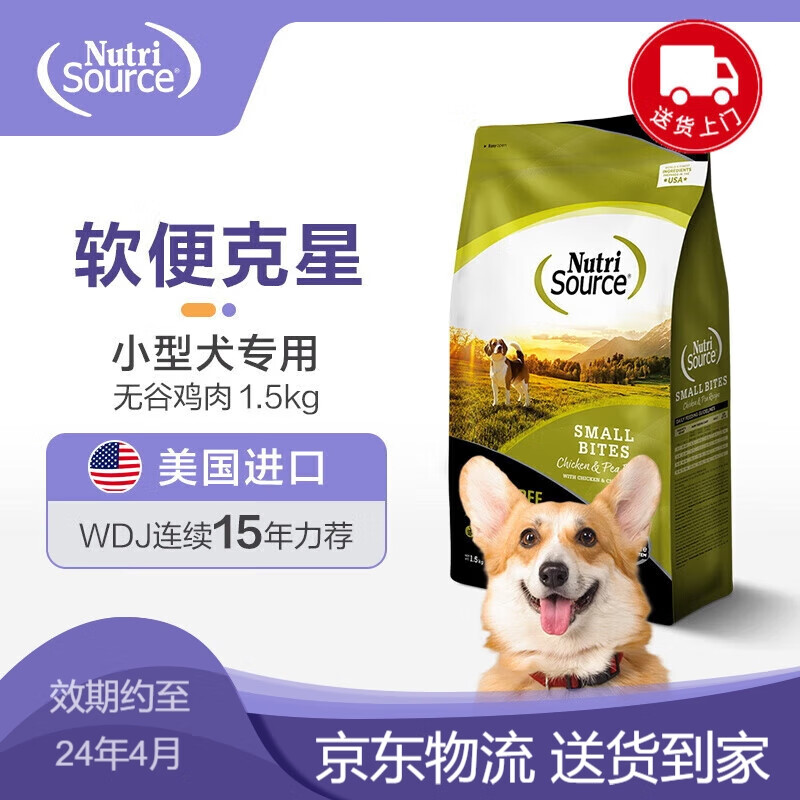 NUTRISOURCE新萃美国进口无谷小型犬比熊狗粮幼犬成犬鸡肉味 1.5kg