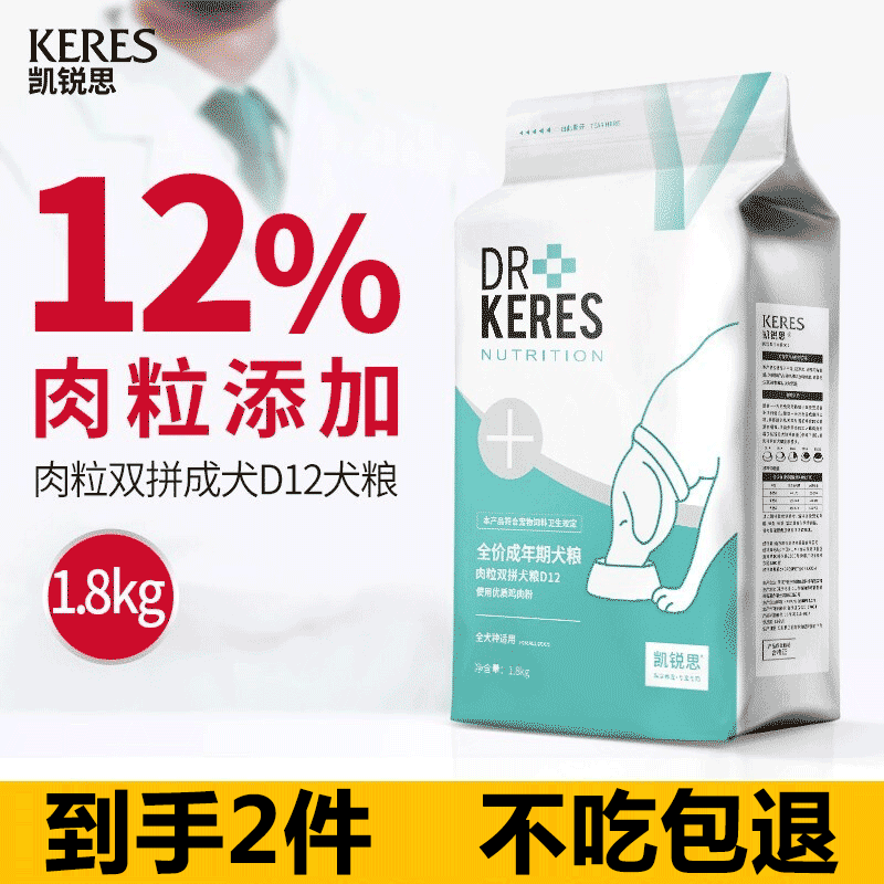 凯锐思 狗粮肉粒双拼粮D12 成犬小型犬泰迪比熊柯基全价通用型犬粮 【肉粒双拼粮3.6斤】到手2件¥79