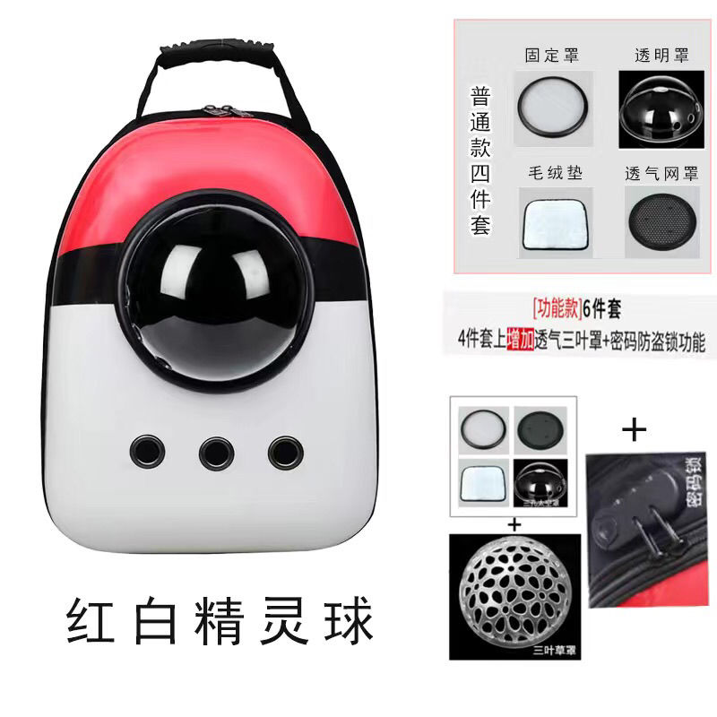便携透明太空宠物舱双肩背包笼子猫咪狗狗用品携带航空旅游外出包 红白 升级五件套