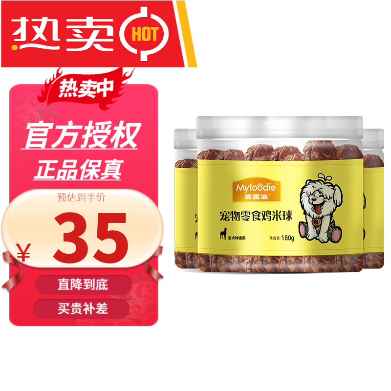 麦富迪(Myfoodie)麦富迪狗零食 鸡米球 牛肉丸 牛肉粒 宠物训练奖励磨牙肉粒肉干犬 鸡米球180g*3罐