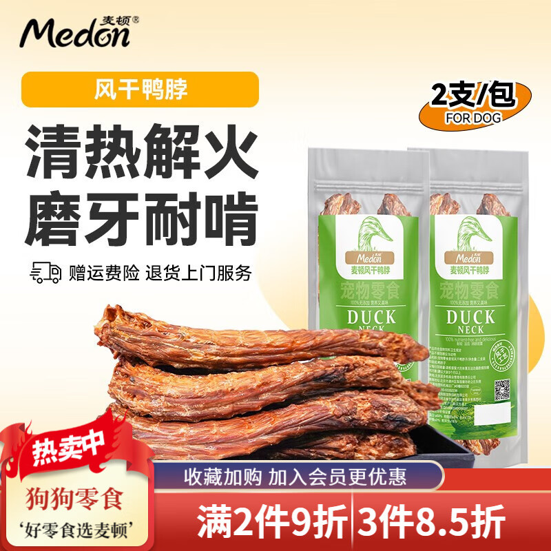 麦顿 风干鸭脖狗零食洁齿骨耐咬宠物泰迪磨牙棒宠物零食 风干鸭脖 2支装